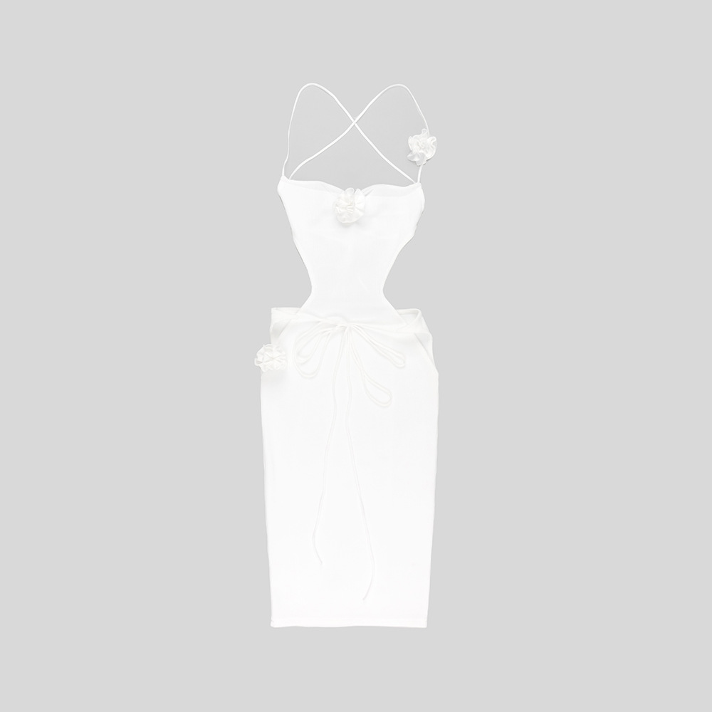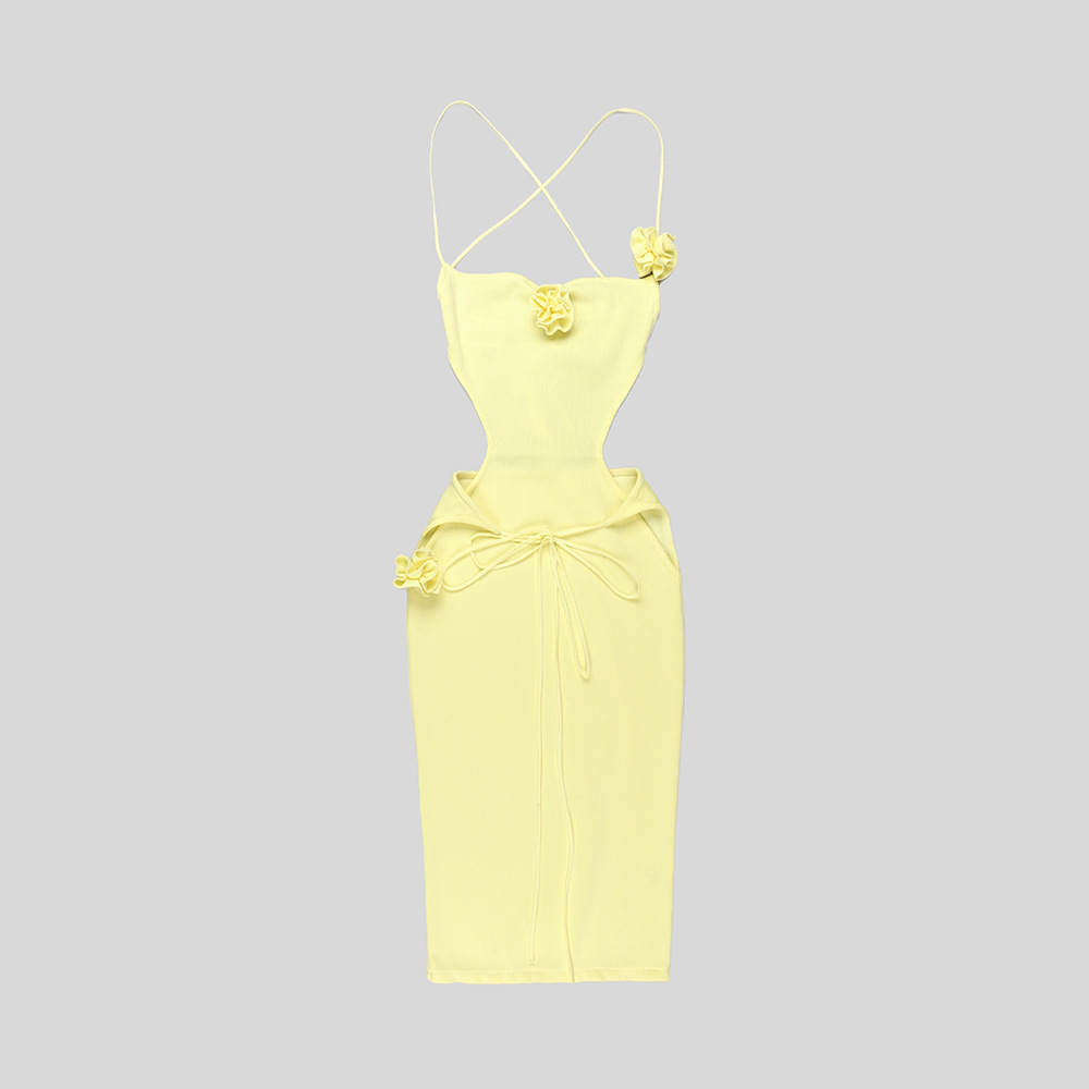 Three Dimensional Floral Cutout Lace Up Cami Dress Bandage Stretch Dress