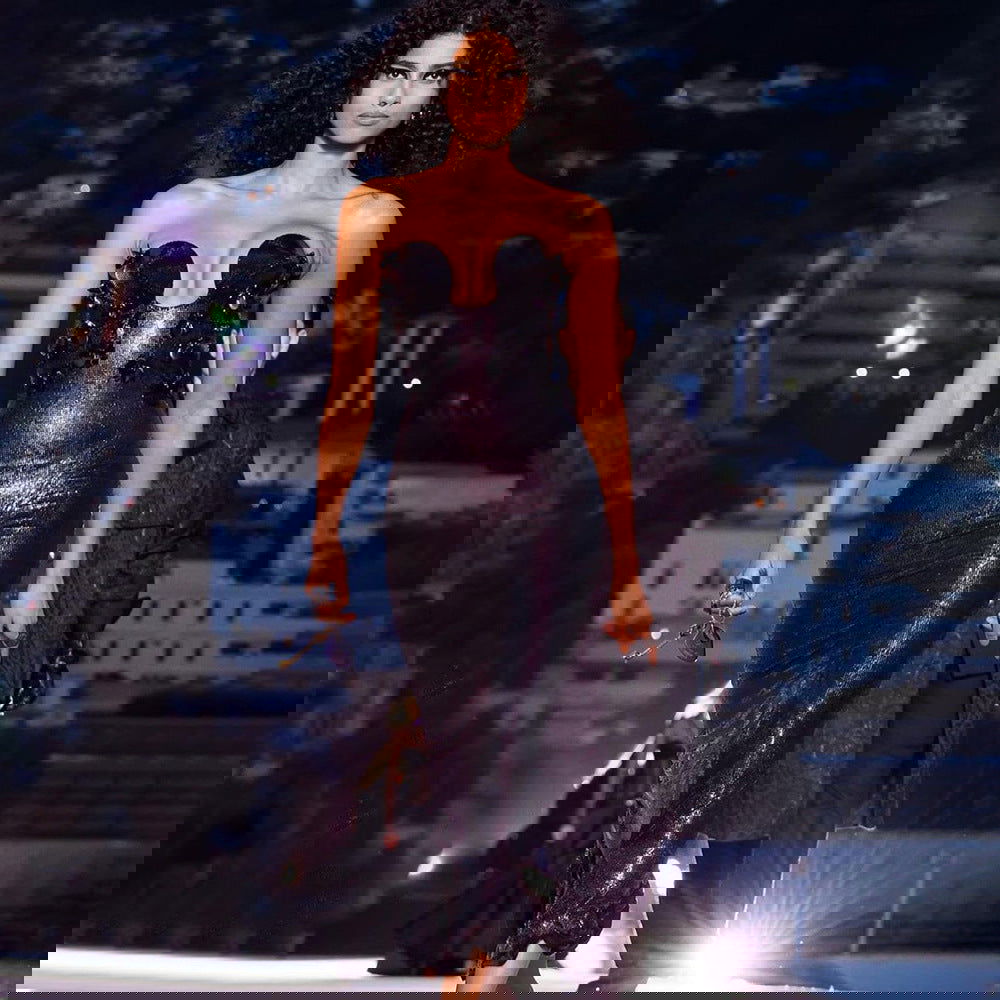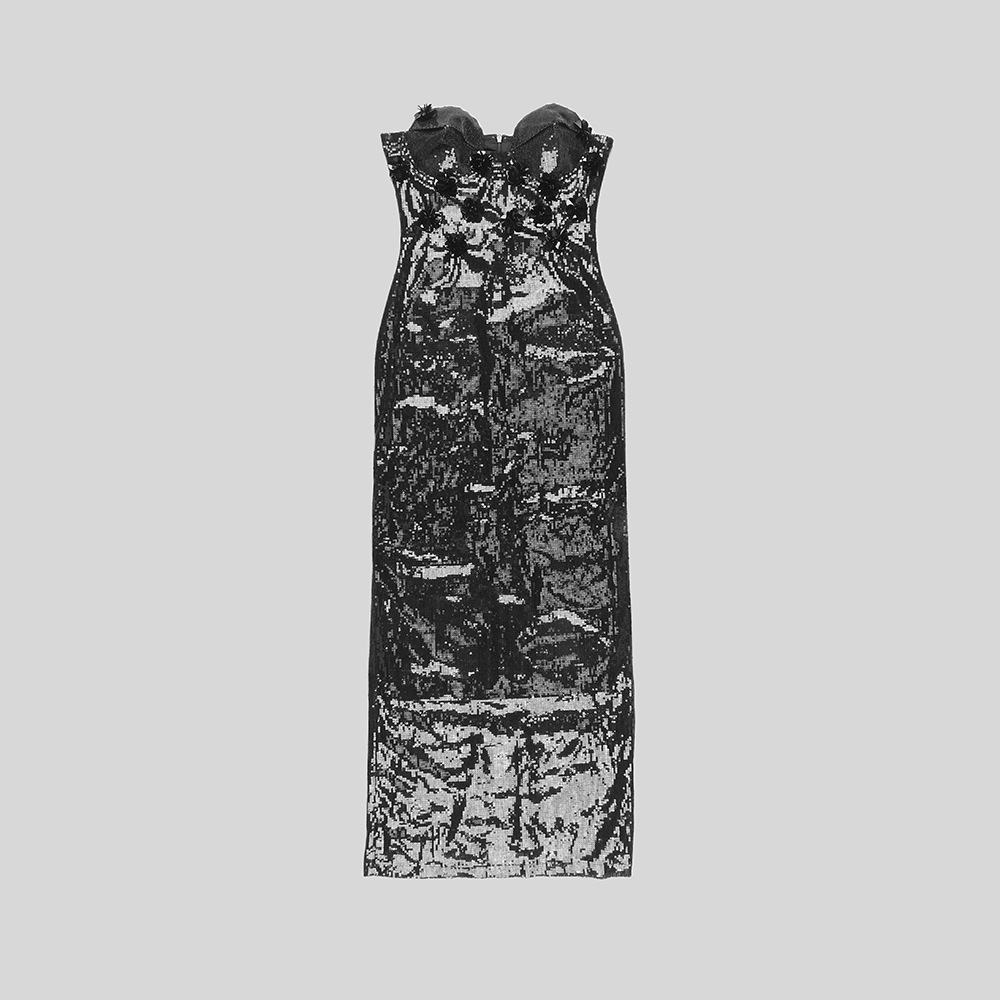 Three Dimensional Floral Sequin Strapless Dress Catwalk Dress Nightclub Sexy