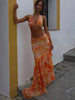 Tie-Dye Print Halter Bra and Ruffles Long Skirts