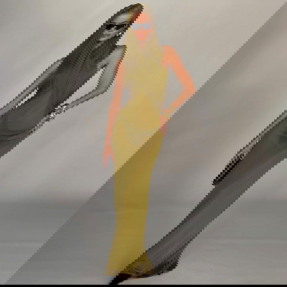 Turmeric Hooded Tulle Backless Cross Two Way Wear Dress