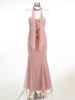 Expertly crafted for a flawless fit. this Pink Twisted Tube Scarf Mermaid Flare Midi Dress is a must-have addition to your wardrobe. Sleek and elegant. the twisted tube design accentuates your curves while the mermaid flare adds a touch of drama. Perfect for any occasion. this dress is sure to make a statement.