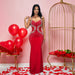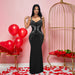 V neck Brace Maxi Dress Slim Fit Rhinestone Sheath Dress