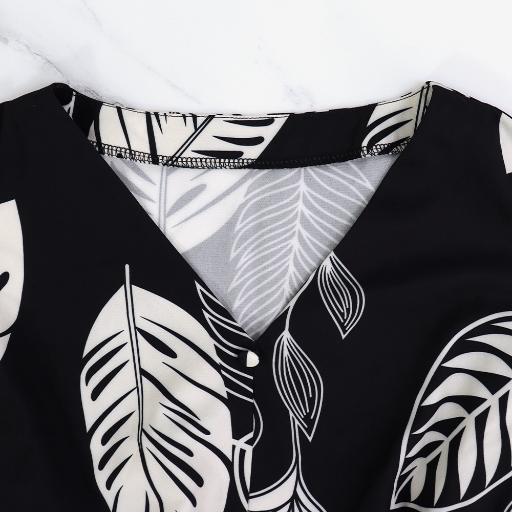 V neck Buttons Decorative Elastic Waisted Stitching A Line Dress