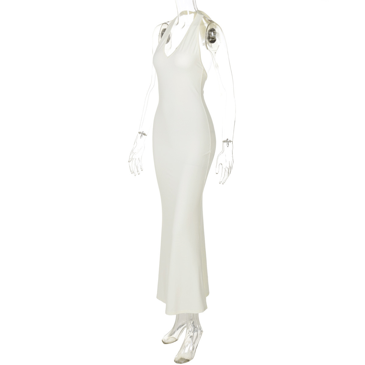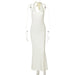 V neck Halter Maxi Dress Backless Slim Fit Solid Color
