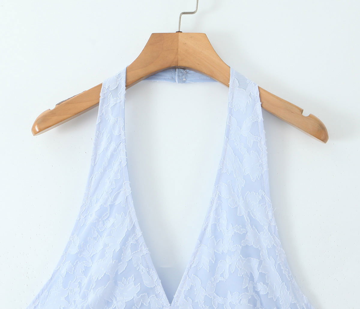 V- neck Halter Waist Controlled Slimming French Midi Dress