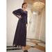 V neck Long Sleeve High Waist Lace up Velvet Elegant Dress