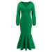 V Neck Long Sleeved Fishtail Dress Waist Slimming Slim Maxi Dress