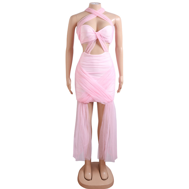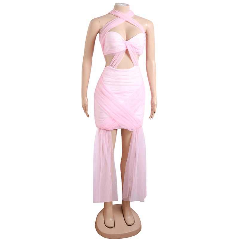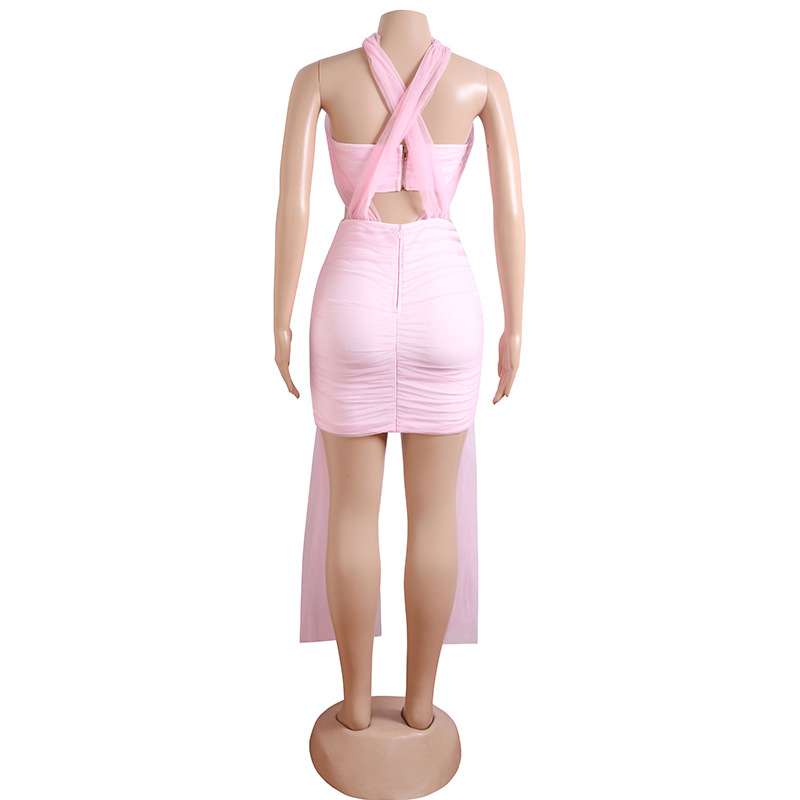 V Neck Low Cut Pure Cinched Mesh Stitching Nightclub Sheath Dress Sexy