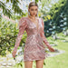 V-neck Sequ Low Cut Puff Sleeve Waist Slimming Tassel Dress Swing Hip Dress Socialite Dress