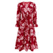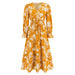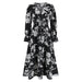 V neck Waist Trimming Lace up Long Sleeve Floral Dress Maxi