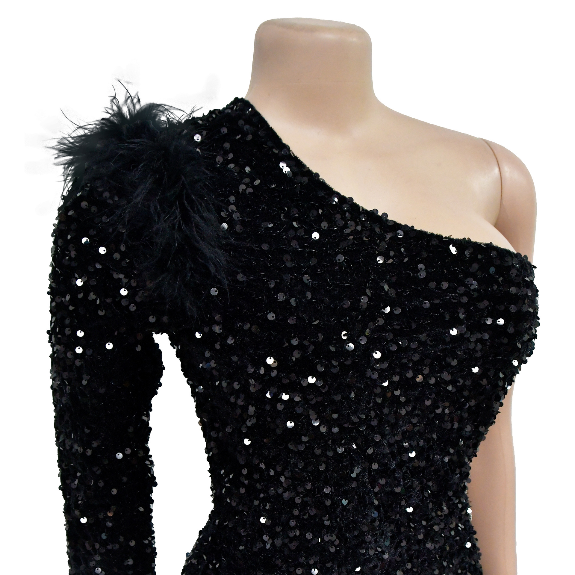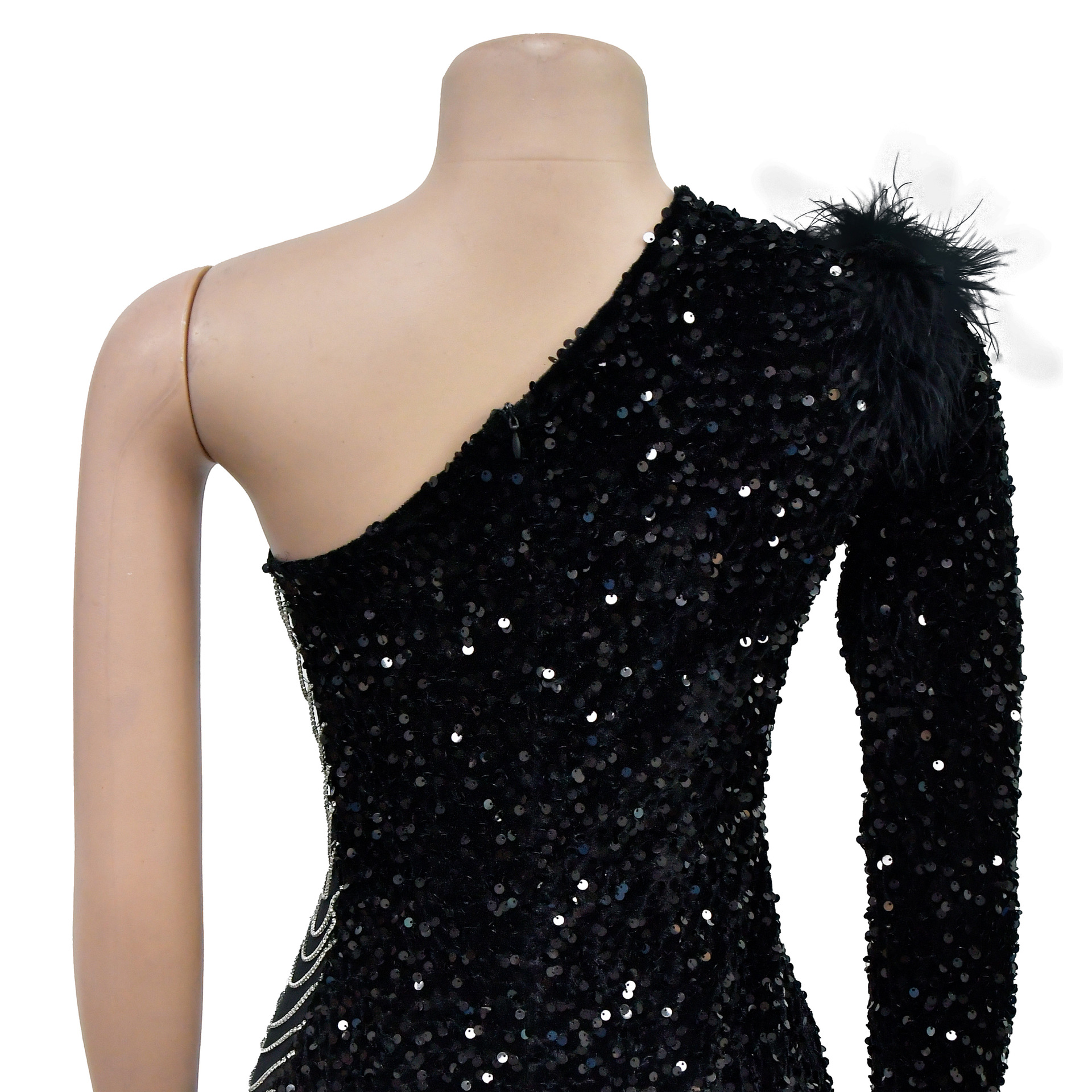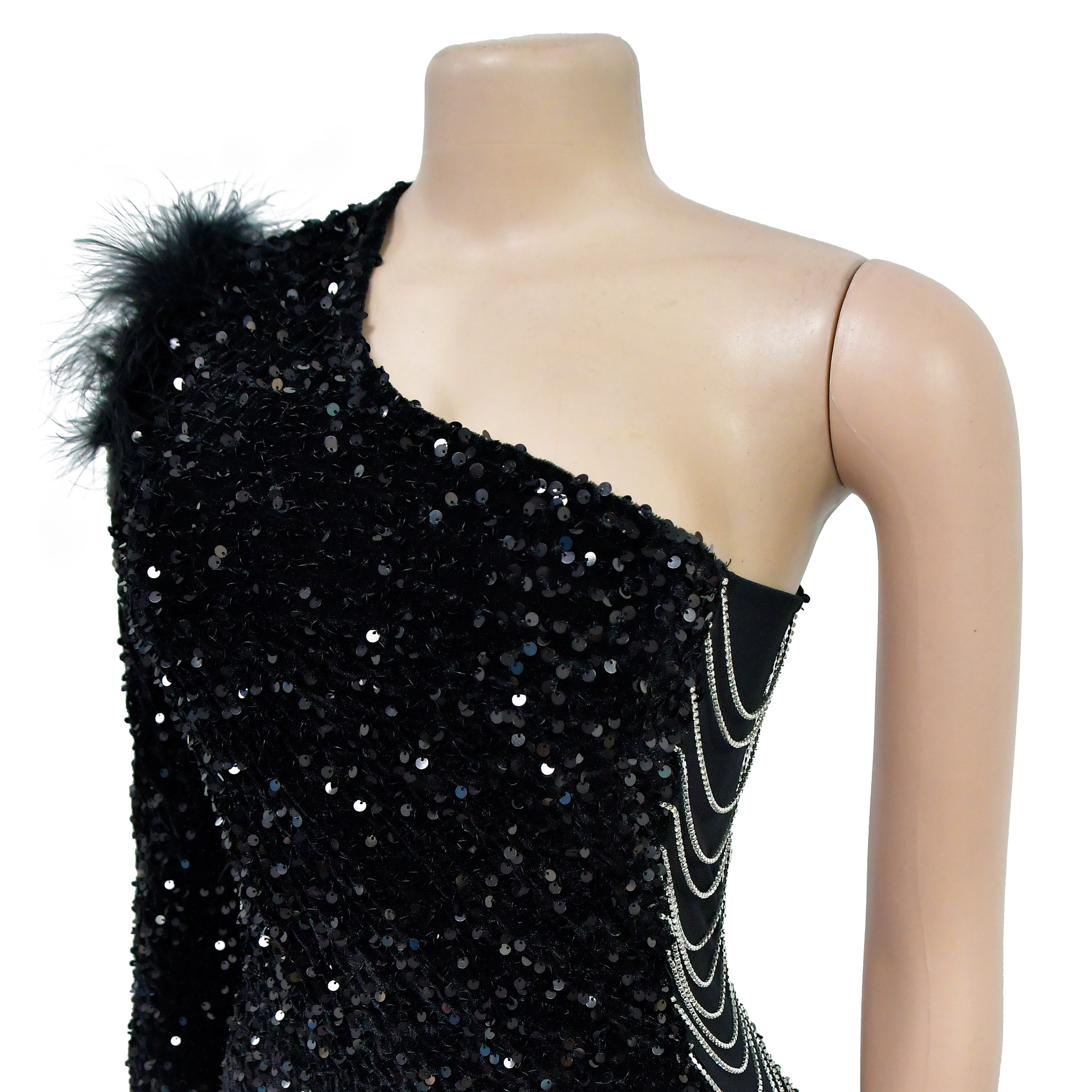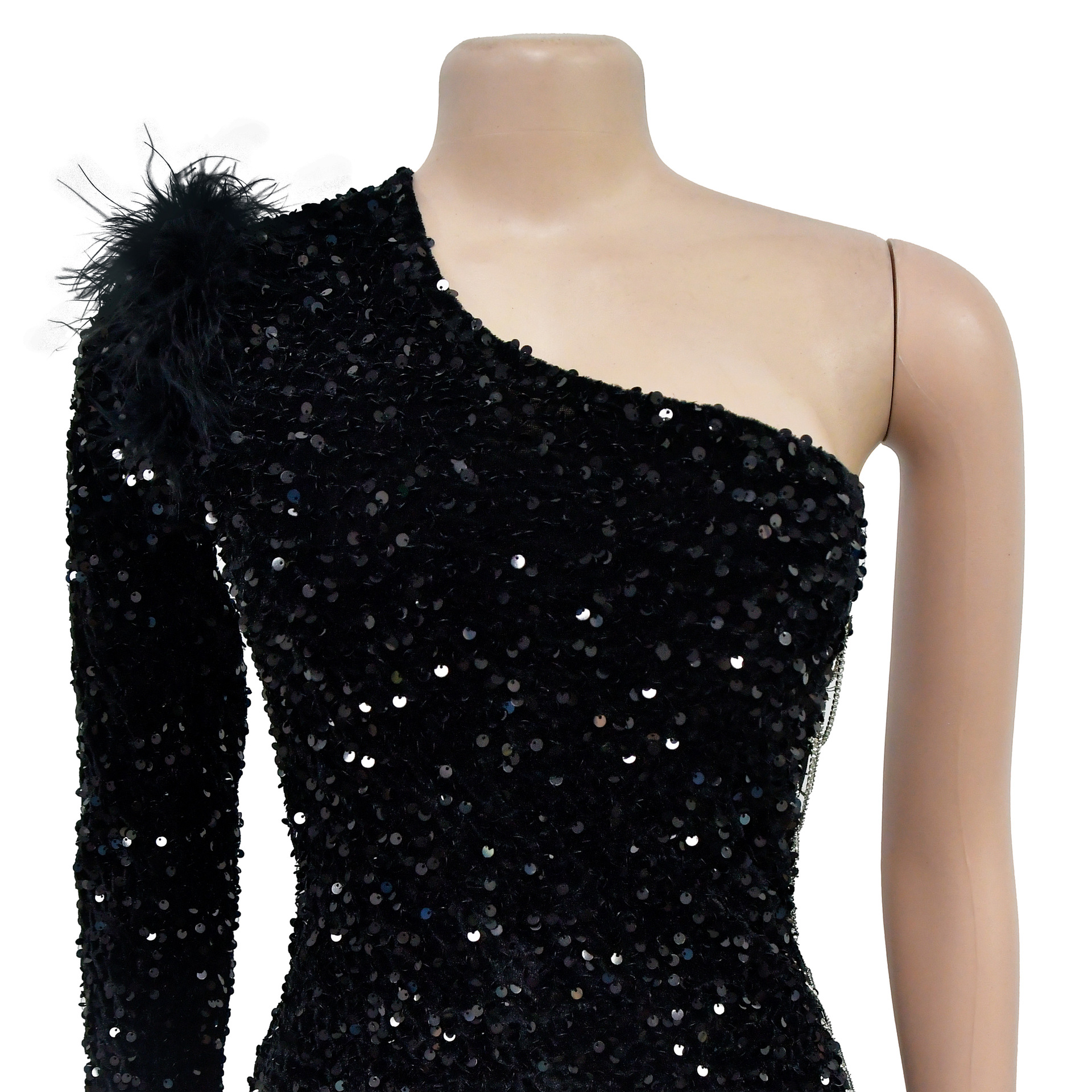 Wear One Shoulder Sequined Split Sheath Dress