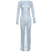 Wear Personality Round Neck Slim Fit Maxi Dress See Through Long Sleeves Dress