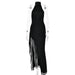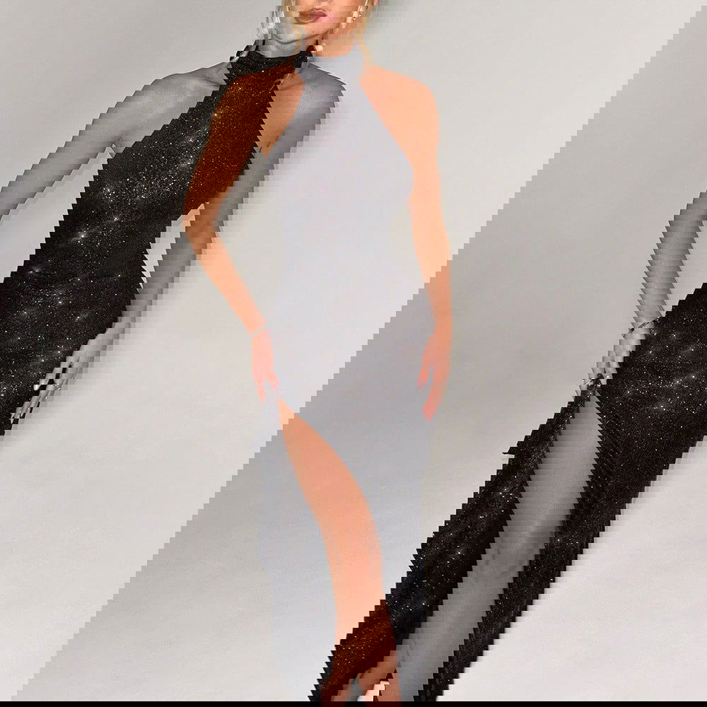 Element: Asymmetric.Zipper.Tie.Split.Sequin.Backless.Lace/Tulle/Fishnet