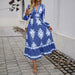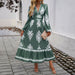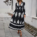 Elegant Printed V Neck A Line Dress