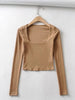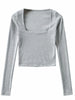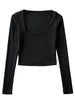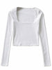 Women Long Sleeves Cotton Ribbed Square Neck Crop Top