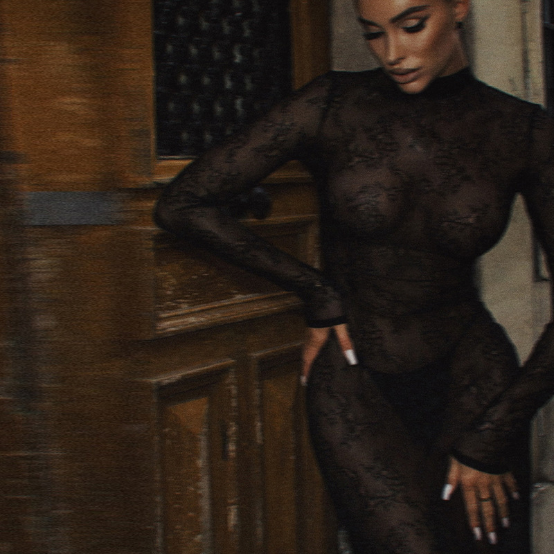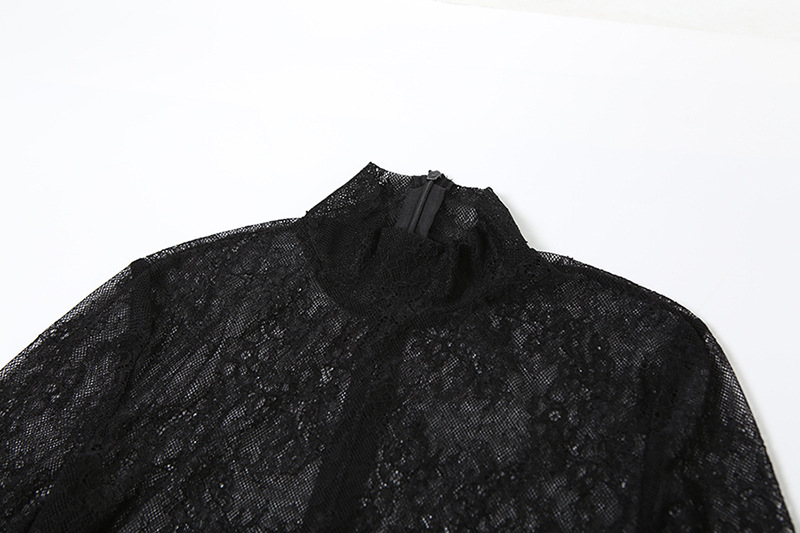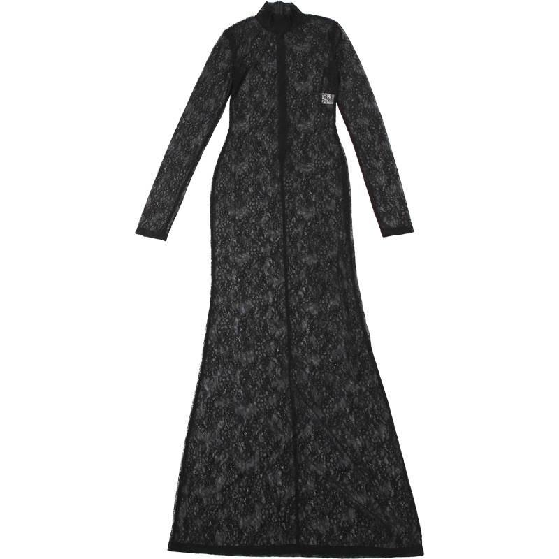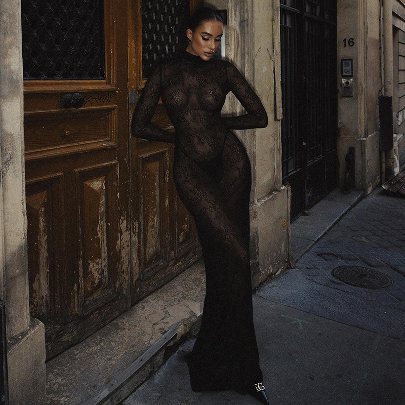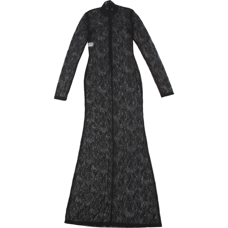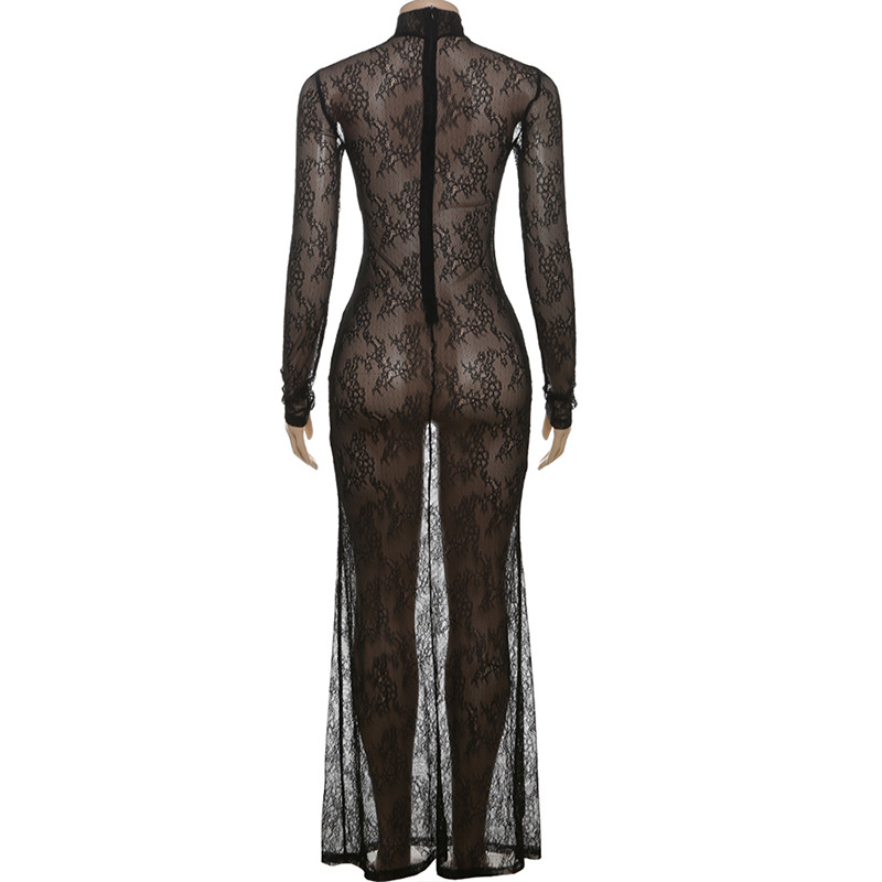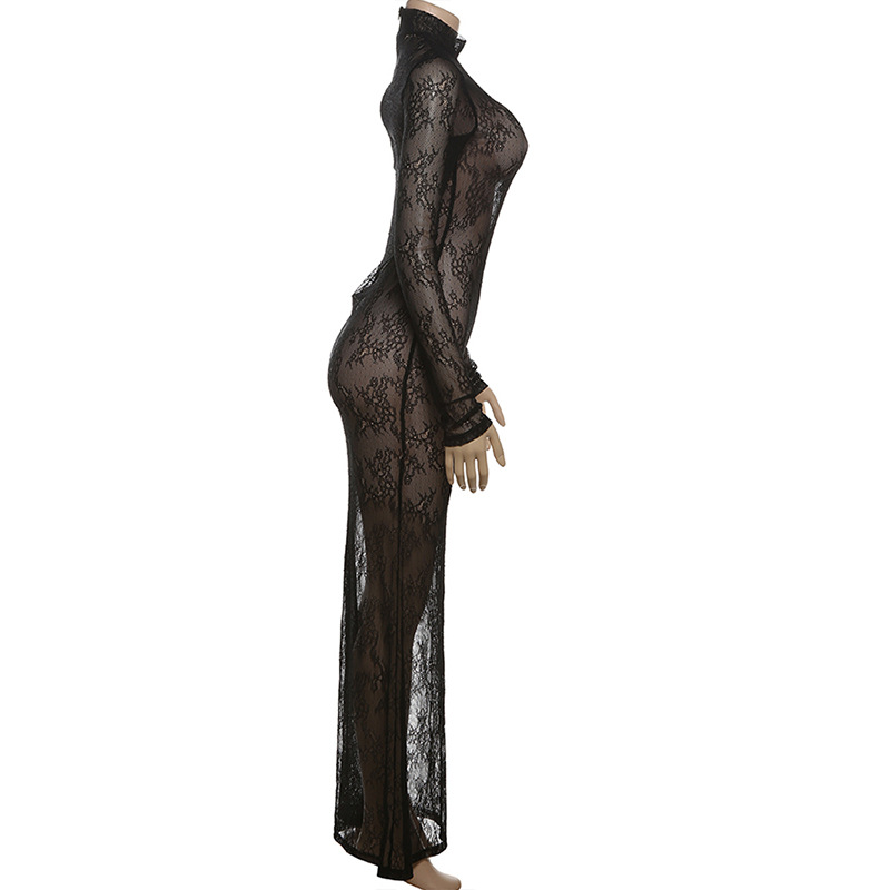 's High Collar Lace Maxi Dress Cutout Slim Long Sleeve