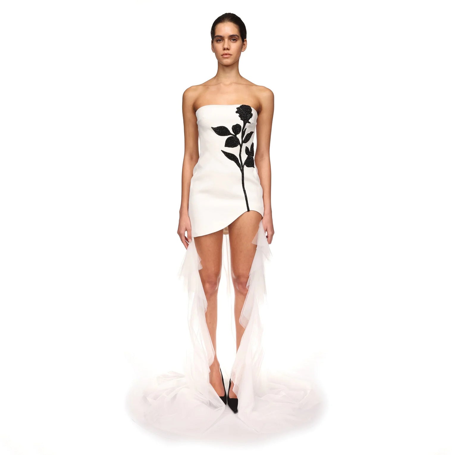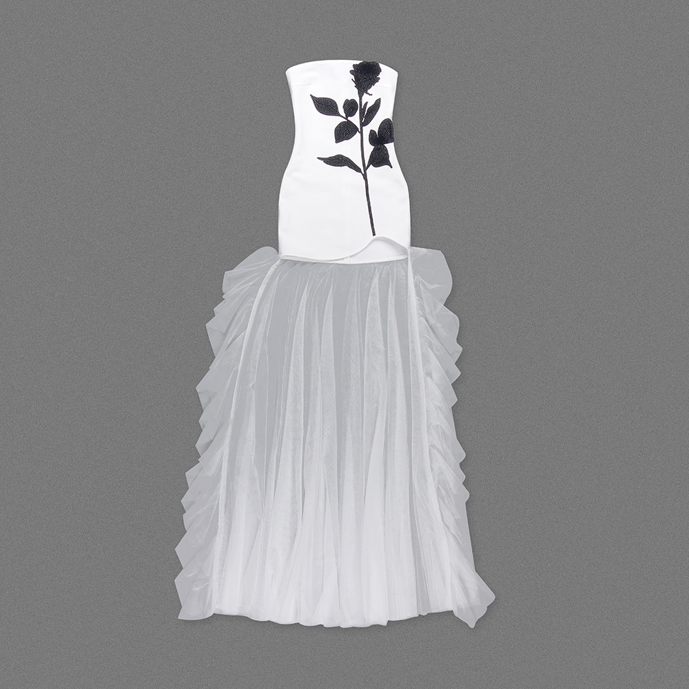 Wrapped Chest Halter Mesh Dress Rose Rhinestone Printing Three Dimensional Bandage Dress