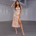 Wrapped Chest Printed Waist Controlled Cami Dress