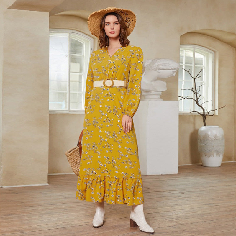 Year V neck Regular Sleeve Long Sleeve Printed Maxi Dress