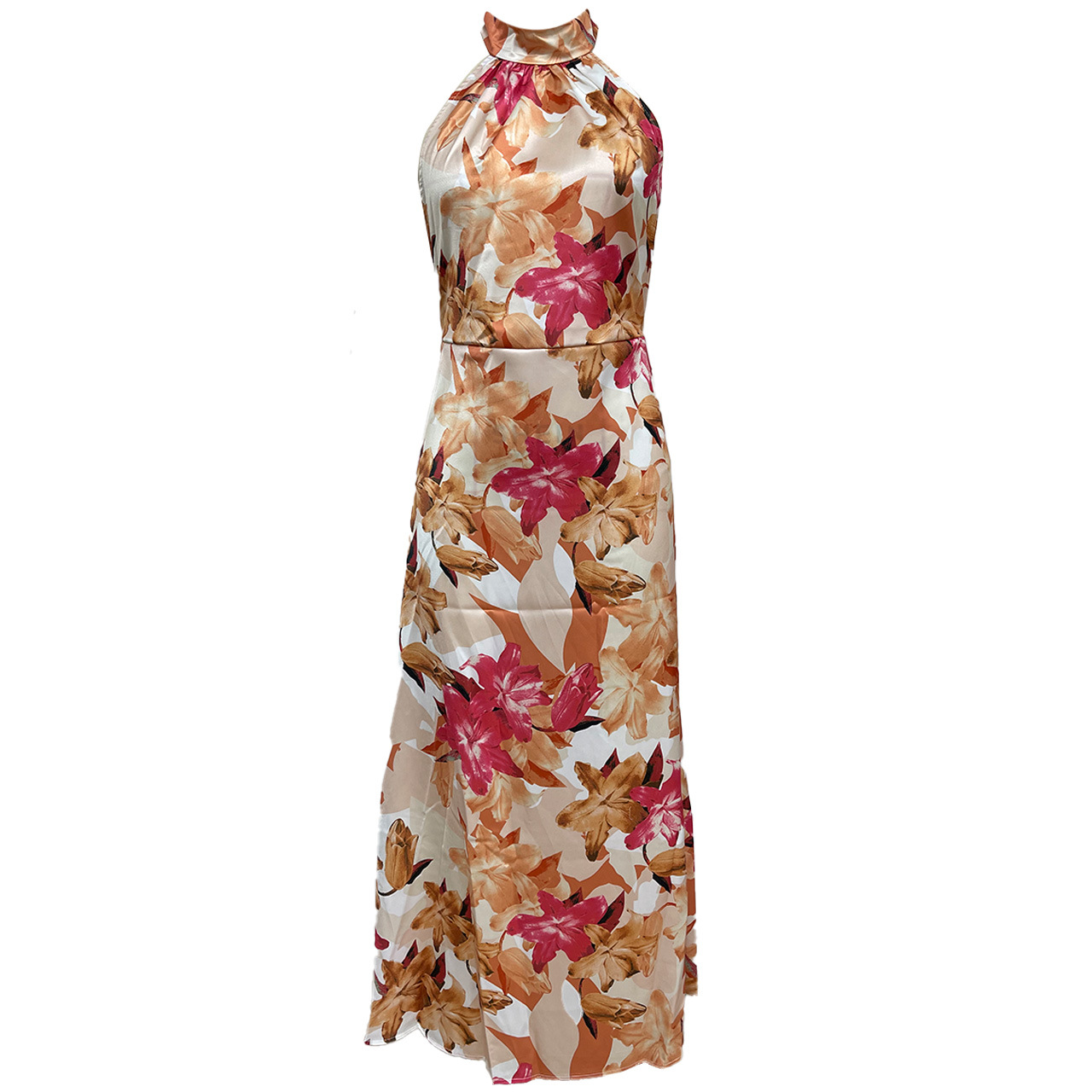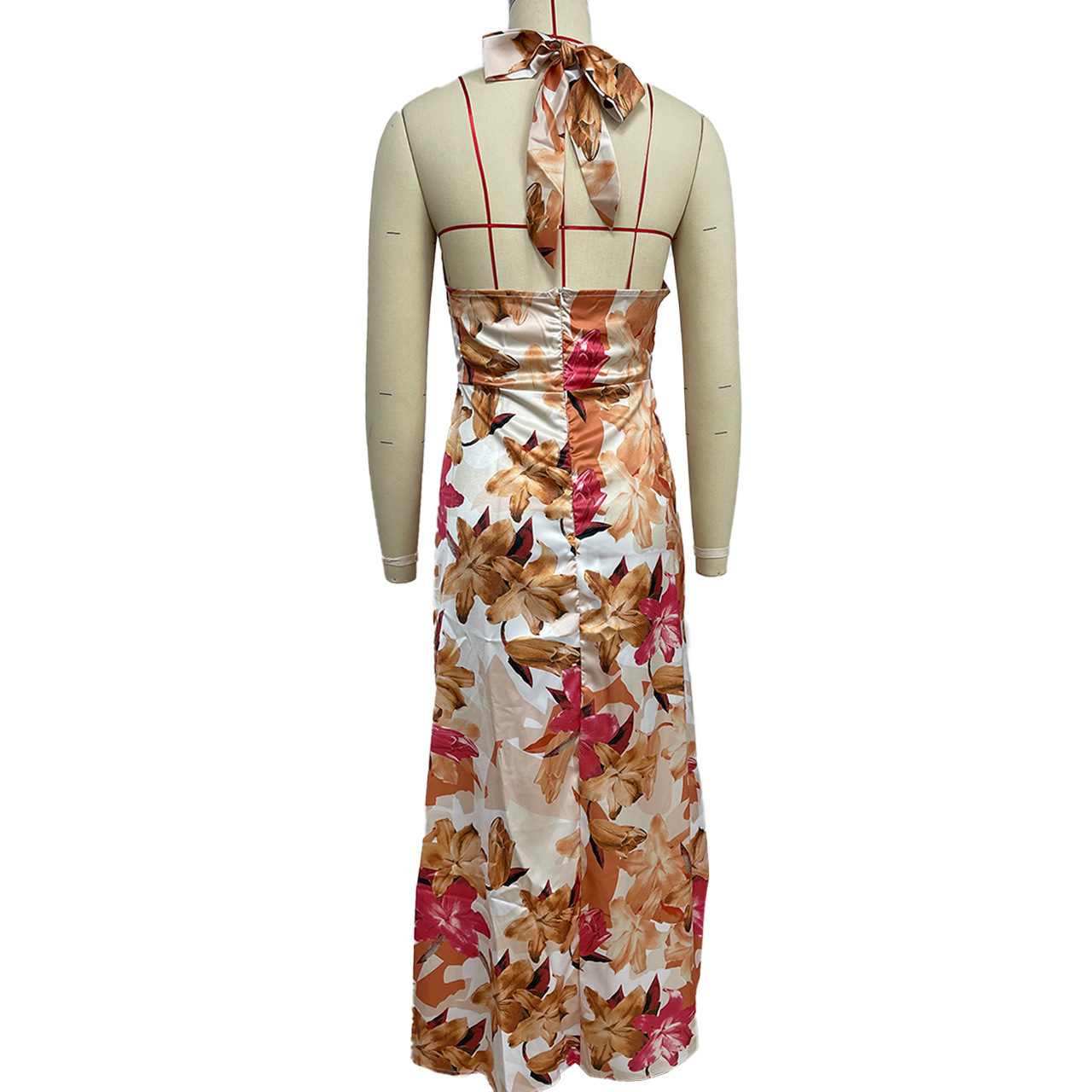 Years Personality Bandage Halter Lace up Backless Print Maxi Dress